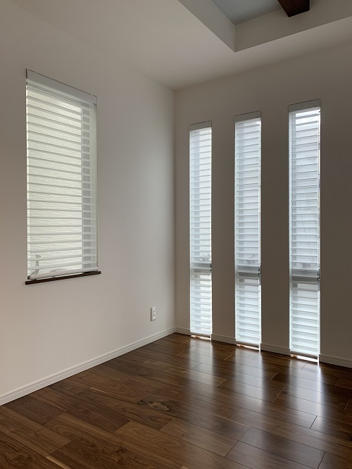 上下2つの横スリット窓にハニカムスクリーン愛知県名古屋市のオーダーカーテン専門店カーテンハウスシルクみどり店。