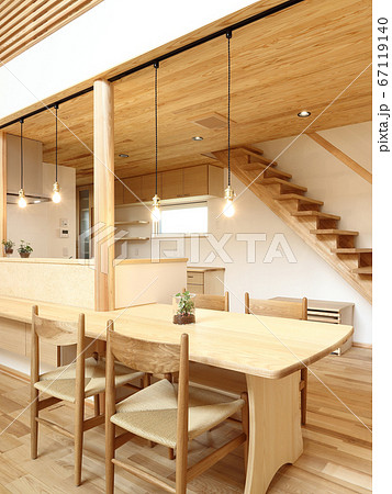 木目調の天井が印象的なリビングリビング &ダイニング施工例ギャラリーケイアイプレストは新築一戸建・土地販売の不動産会社。ケイアイスター不動産グループ。