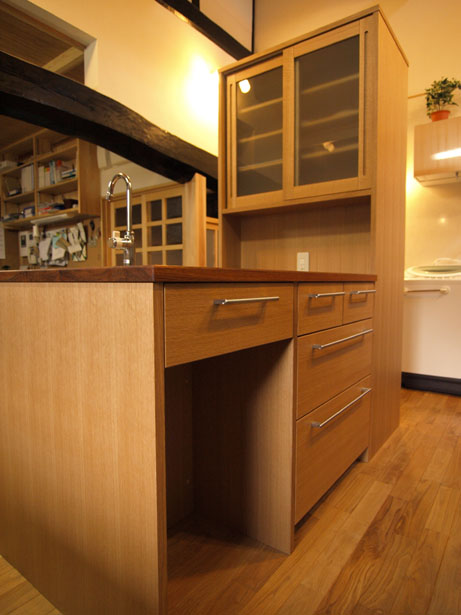 名古屋市 港区にて、オーダーキッチンとアイランド型の作業台施工事例名古屋でリノベーション 一級建築士事務所 住工房。