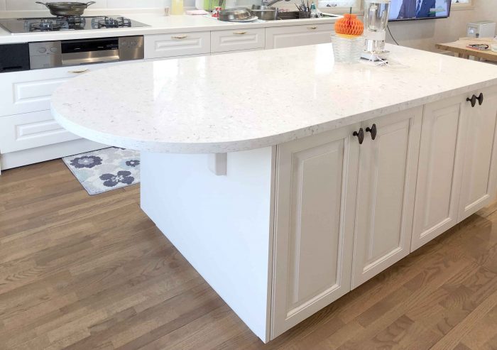 アイランドキッチン作業台 人造大理石+アメリカンブラックチェリー突板 西宮市家具工房アートワークス。