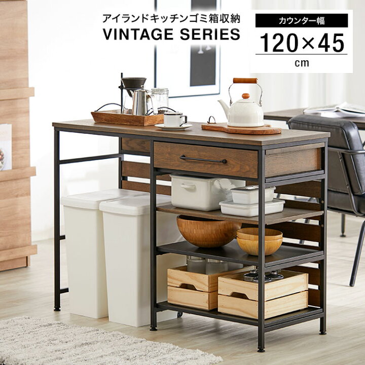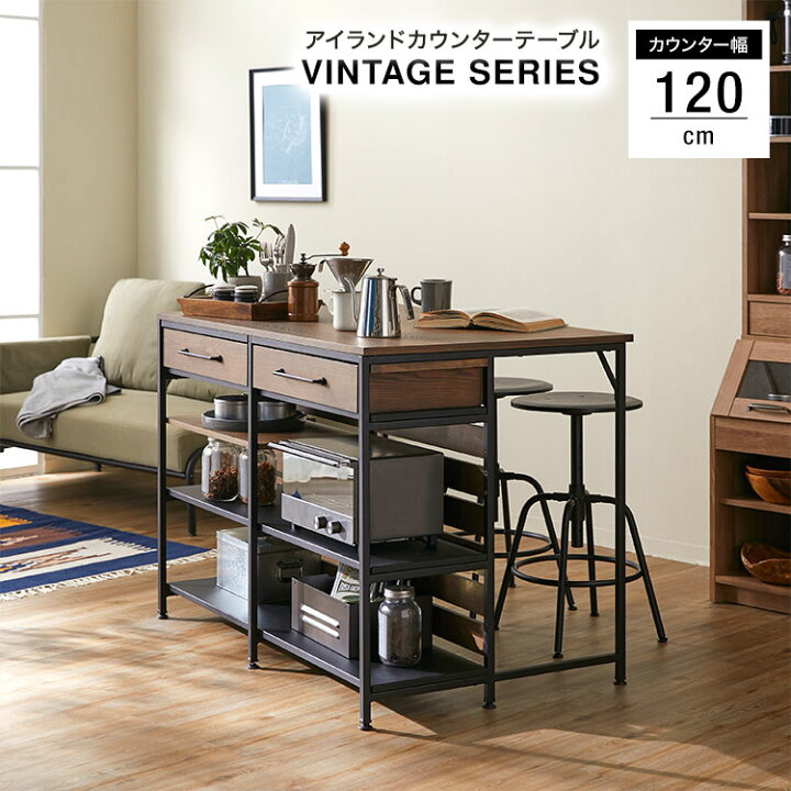 キッチンカウンター ハイタイプ ヴィンテージ調 カウンターテーブル 幅120cmカウンター キッチンラック 収納 家具 キッチン 間仕切り 作業台レンジラック テーブル レンジ台 家電収納 対面 アイランドキッチン シンプル。