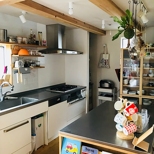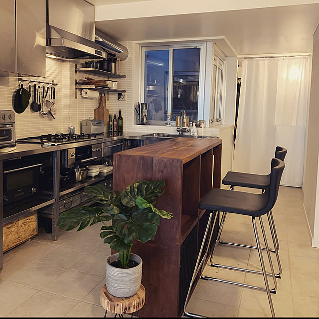 壁付けキッチン アイランド作業台のおしゃれなインテリアコーディネート・レイアウトの実例RoomClip ルームクリップ。