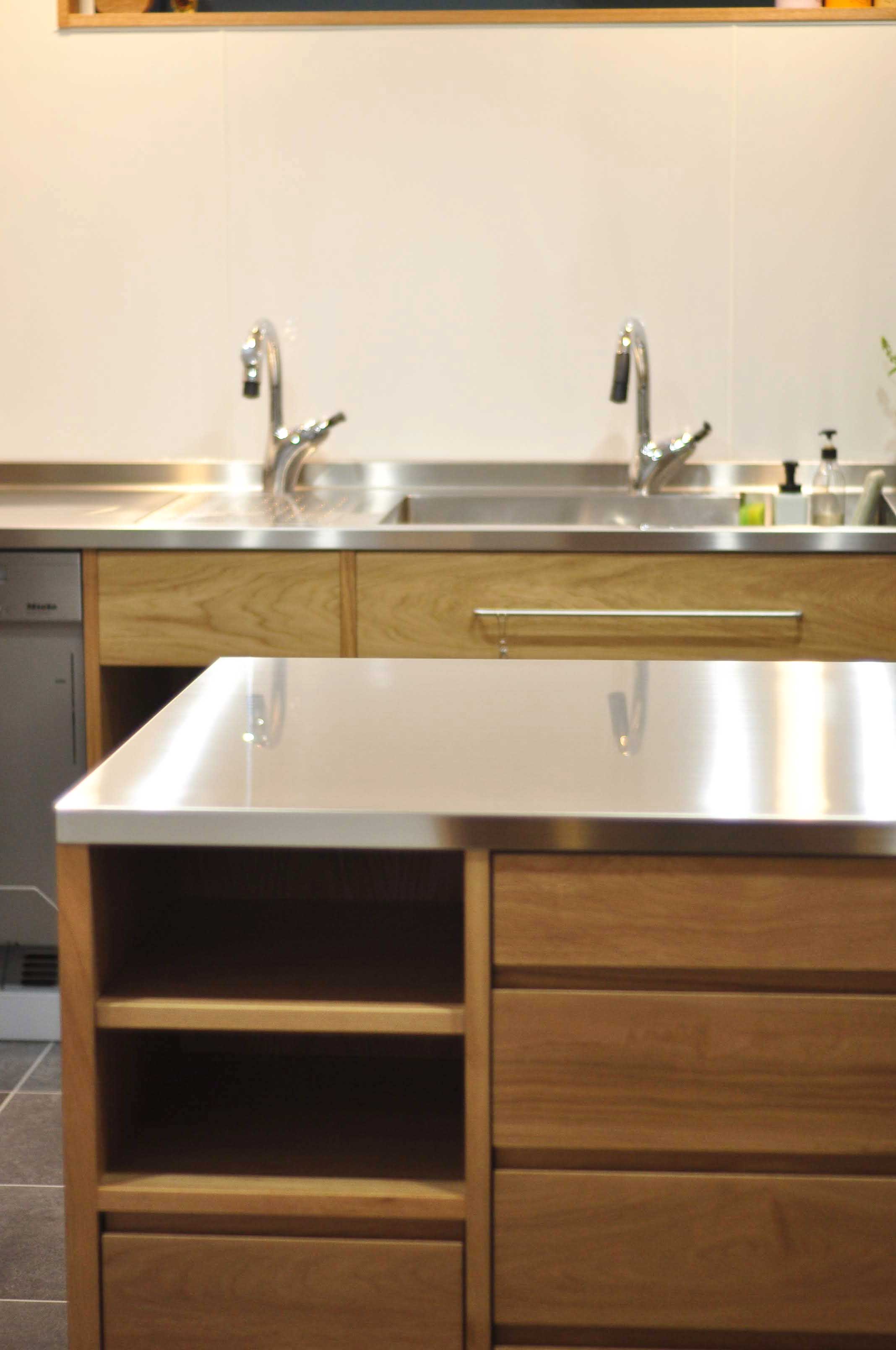 ステンレス天板のフルオーダーキッチンアイランド作業台。