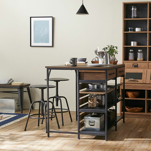 AmazonLOWYA ロウヤ キッチンカウンター 収納 作業台 天板付き 便利 幅120cm アイランドキッチン スチール脚 ブラウン食器棚オンライン通販。