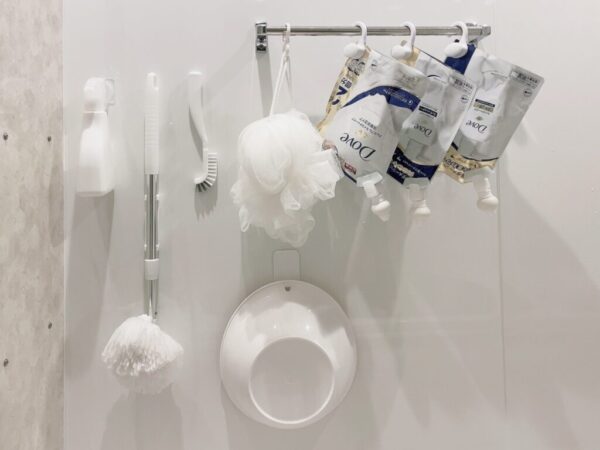 お風呂の収納で棚いらない!使わないから吊るしたらスッキリした!ヒロ兄ラボ。