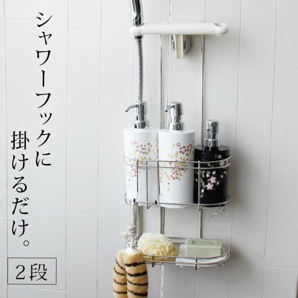 シャワーフックに掛けるだけ「ステンレスシャワーラック」 スリム ワイド 収納 お風呂 浴室 ステンレス 風呂 バスルーム サニタリー ラック 二段。