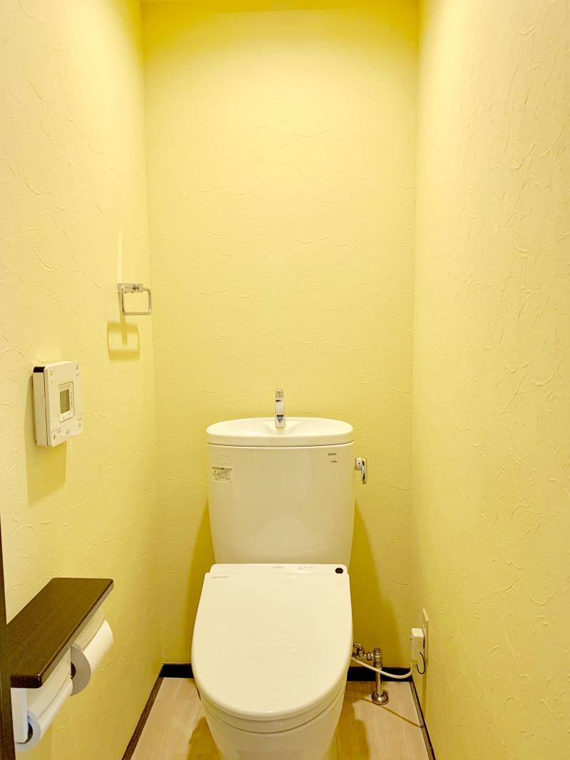 黄色のアクセントが華やかなトイレリフォーム│越谷市施工事例埼玉のリフォーム店越谷市・墨田区・さいたま市ナカノヤ。