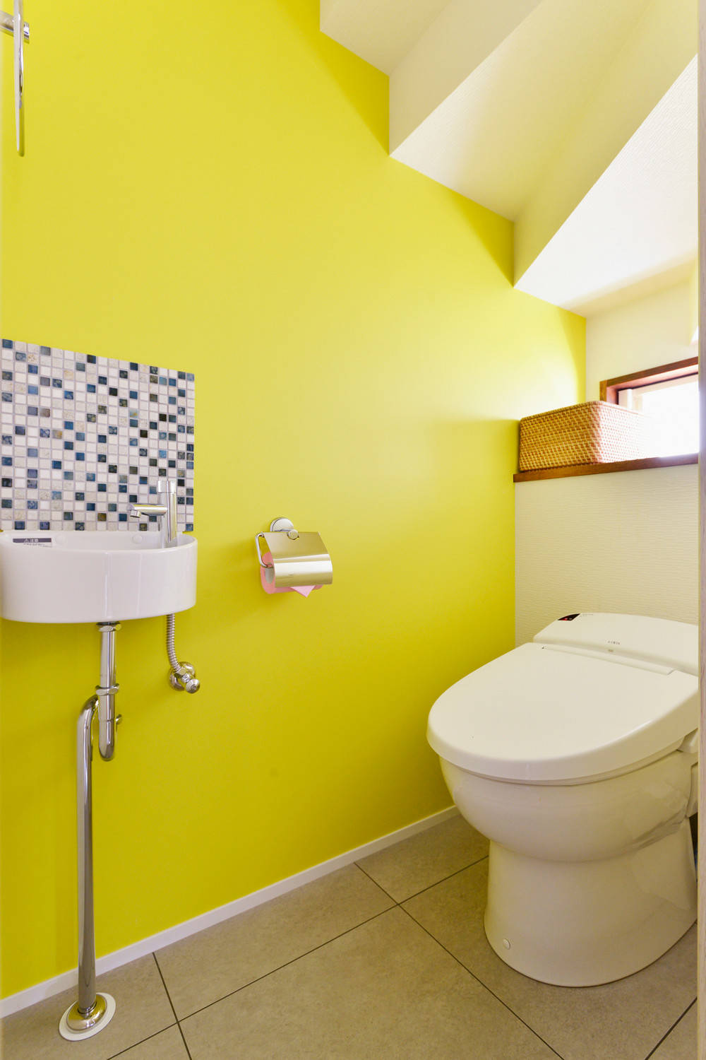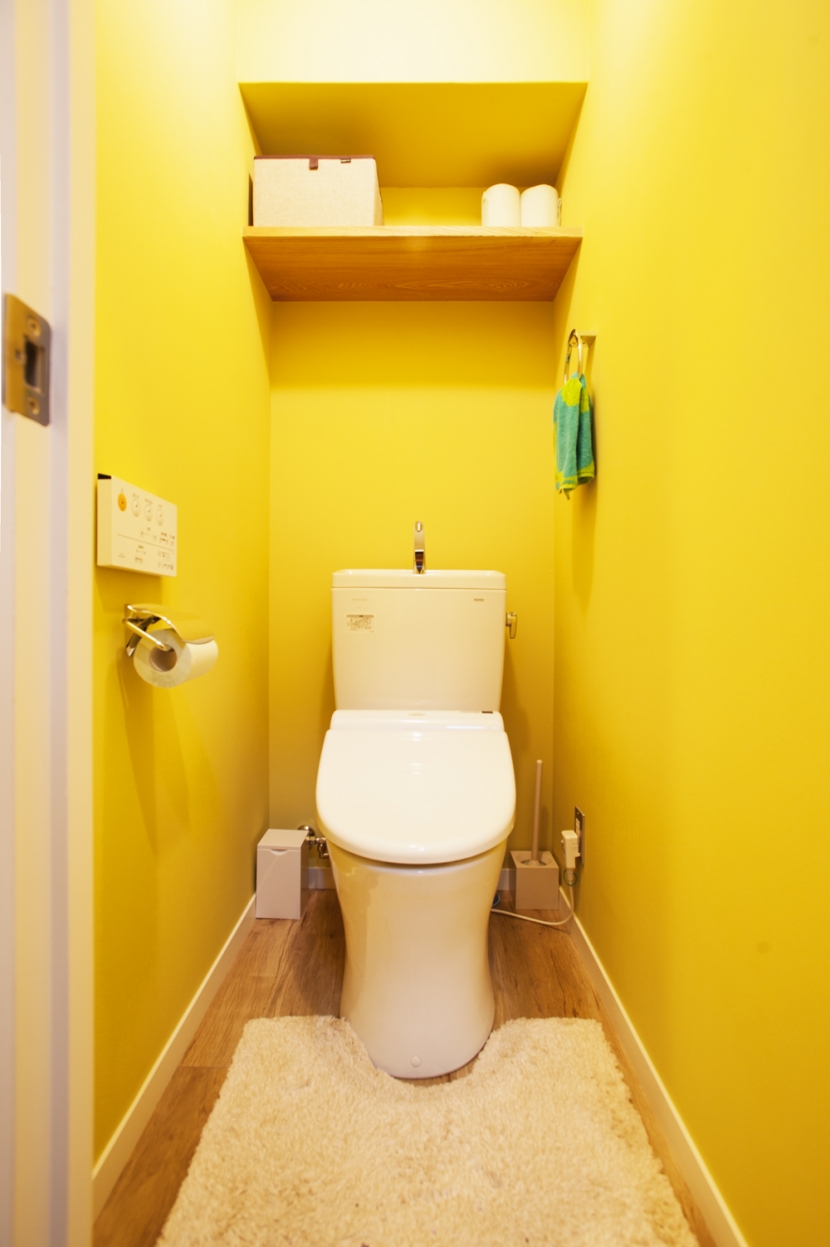 イエローのアクセントクロスが鮮やかなトイレ T邸・「自分のことは自分でできる子ども」を育てる工夫が満載- バス トイレ事例SUVACO スバコ。
