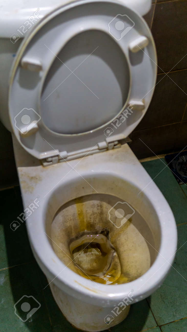 家の中に黄色い水垢の染みが付いた汚れた便器。非衛生的で、汚れた、不快なトイレ。の写真素材・画像素材 Image 170321640。