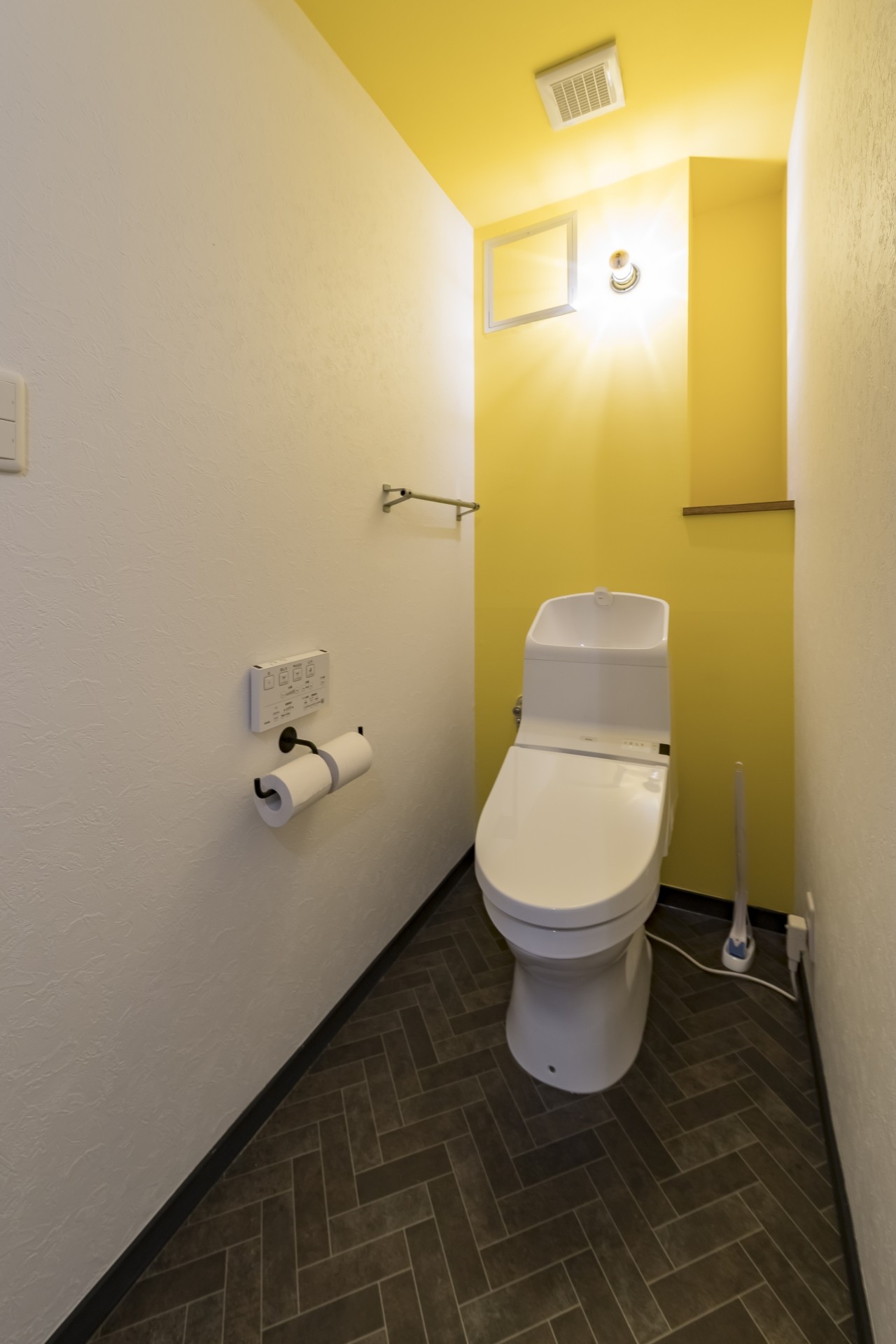 トイレには黄色いアクセントクロスをセレクト くふうイエタテ。