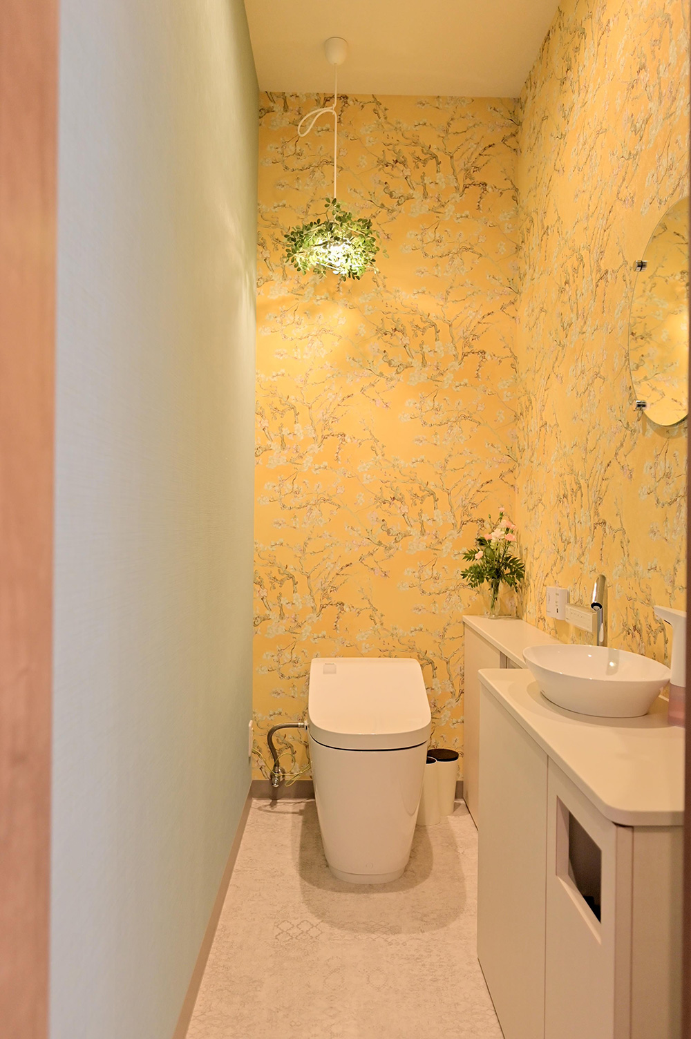 優しいイエローで包み込む、エレガントなトイレ空間輸入壁紙 クロス のテシード。