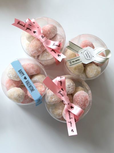 バレンタインシールを使ったスノーボールのラッピングラッピングcotta*コッタ。