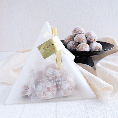 スノーボールクッキーの三角ラッピングラッピング富澤商店。