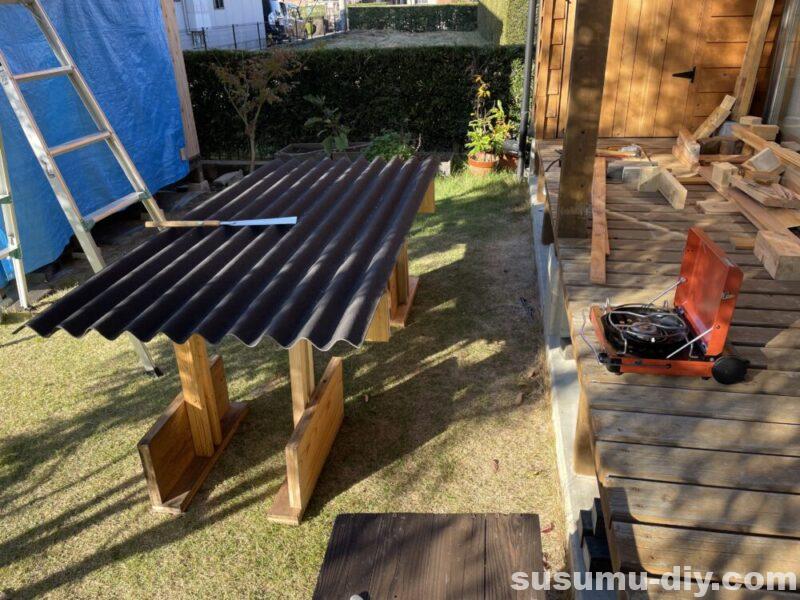 ひとりde小屋づくり #9 片流れ屋根「オンデュリン材」取り付け方・簡単に切るコツ、ルーフィングや野地板の敷き方など ~すすむDIY -susumu-DIY。