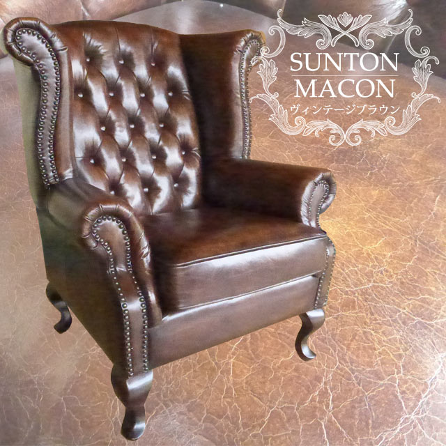 ウィングバックチェア 1人掛け チェスターフィールド仕様 ソファ・ソファベッド。