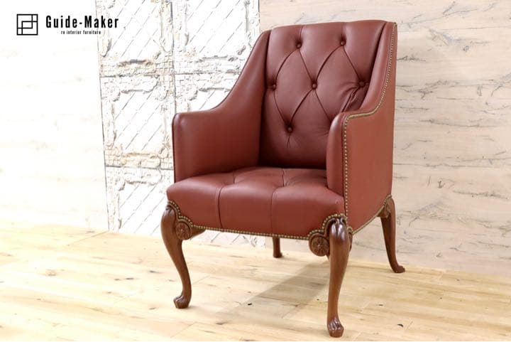 ウイングバックチェア 本革 1人掛けソファ ハイバック クラシック 戸塚店。