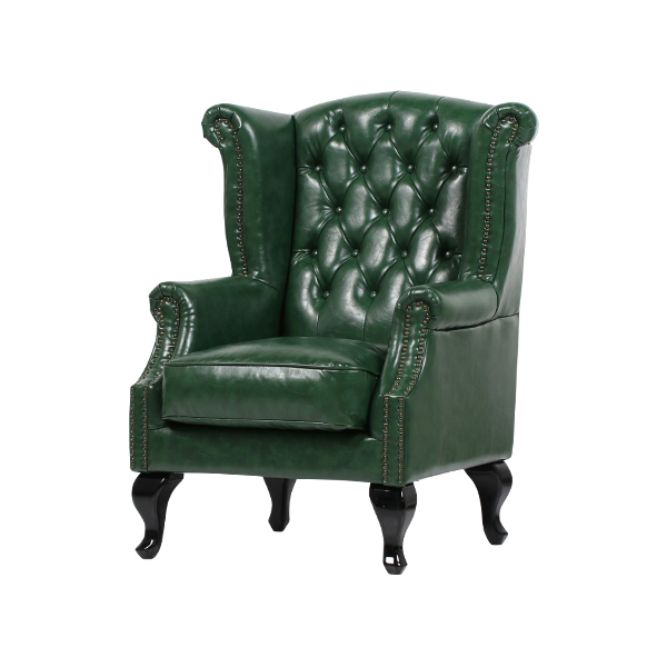 グリーンPUレザーチェスターフィールドウイングバックシングルソファ アームチェアSA925B1-P91Kソファ専門店 ロイヤルソファズ。