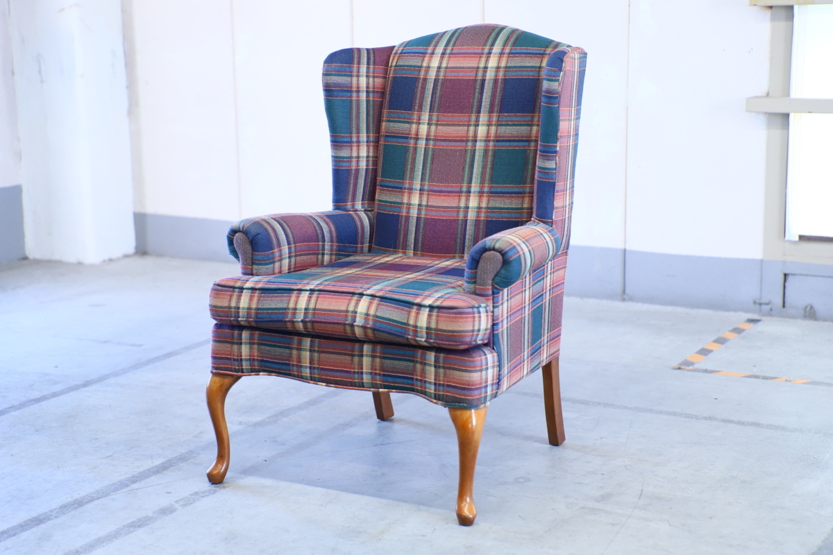 ウイングチェア ハイバック一人掛けオーダーカーテン&オーダーソファのコロニアルチェック。