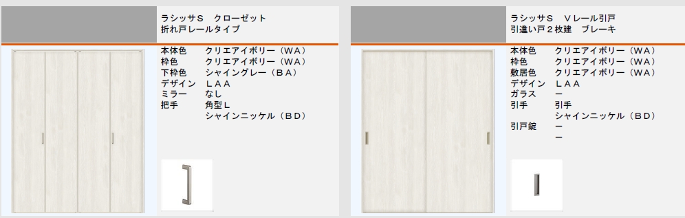 ☆リクシル クローゼットドア 押入れ 折れ戸 ラシッサS LAE ASCF-○Z-○-○-9-AZ-○ レールタイプ 把手なし ノンケーシング2スパン 扉 建具 リフォーム LIXIL☆送料無料クローゼットドア 2枚 折れ戸 ラシッサ S ノンレールタイプ LAA 把手付ノンケーシング枠。