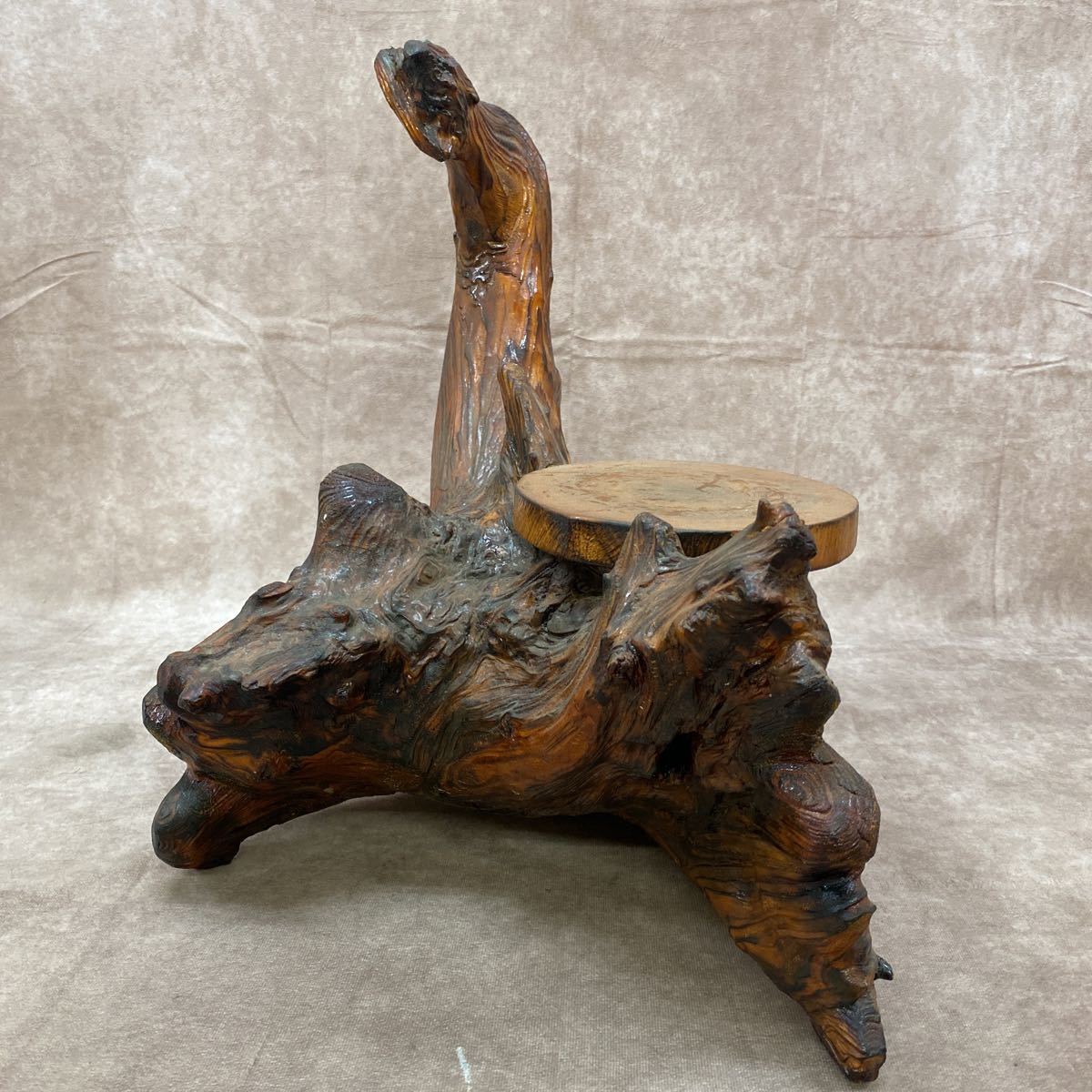 木の根 花台 飾り棚 大きい 天然木 自然木 流木 瘤 花台 盆栽台 置物 飾り物 オブジェ。