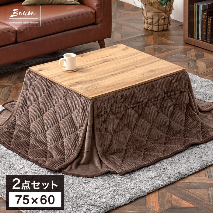 リアル木目調こたつ 2点セット 75×60cm カルテス+ビケ ビケ スノウ メレンゲこたつテーブル・布団セット 長方形 こたつテーブル 一人用おしゃれ 洗える 2点 北欧 一人暮らし。