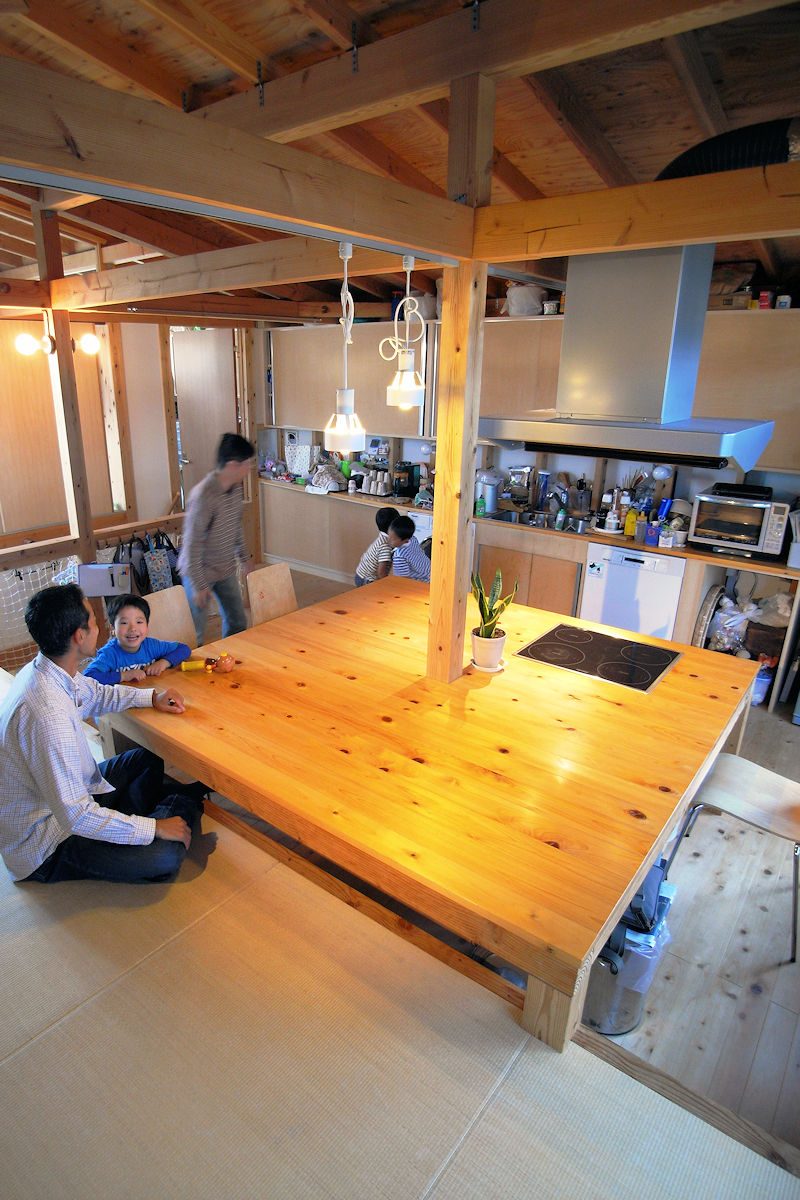 柱梁現しとした素の住宅、現代の囲炉裏がある家の紹介一級設計事務所 感共ラボの森。