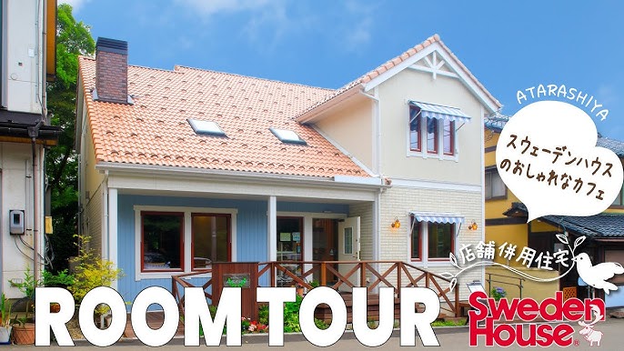 ルームツアー🇸🇪 スウェーデンハウスの店舗併用住宅!ミルキーブルーの外観がとっても可愛い北欧デザインのカフェ兼住宅。