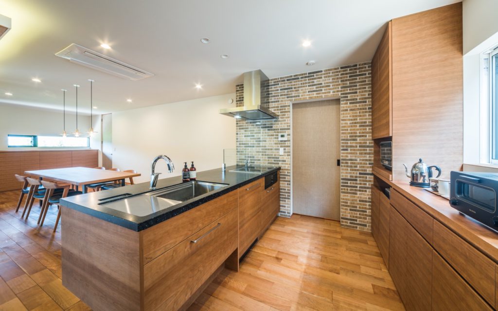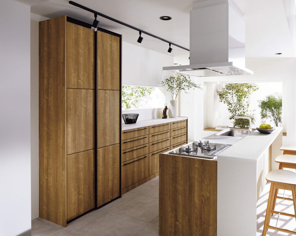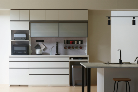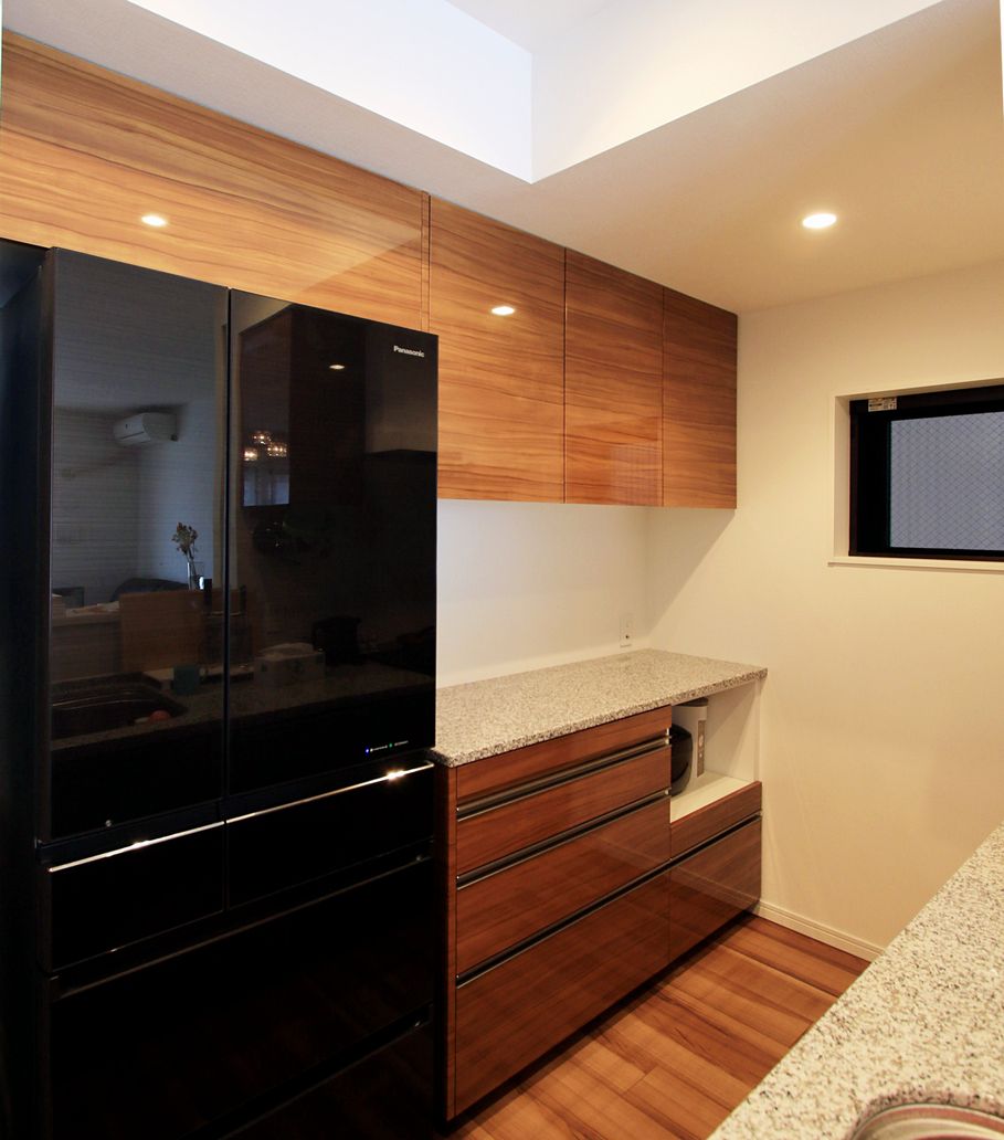 対面キッチンには、背面収納の造作がオススメ!コリーナ。