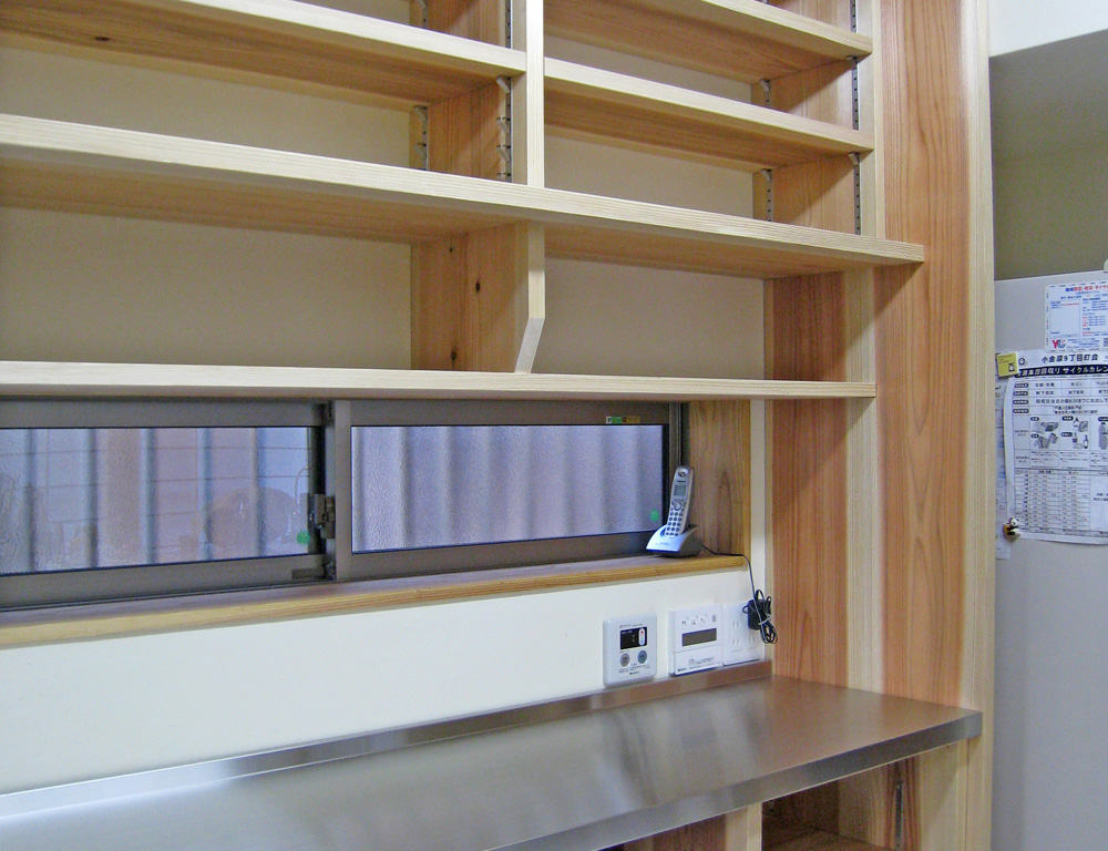 パントリー が隣接したキッチン!ステンレス天板で造り付けで作成したキッチンと造作食器棚 - 和室・和風 - 他の地域 - 探彩工房建築設計事務所Houzzハウズ。
