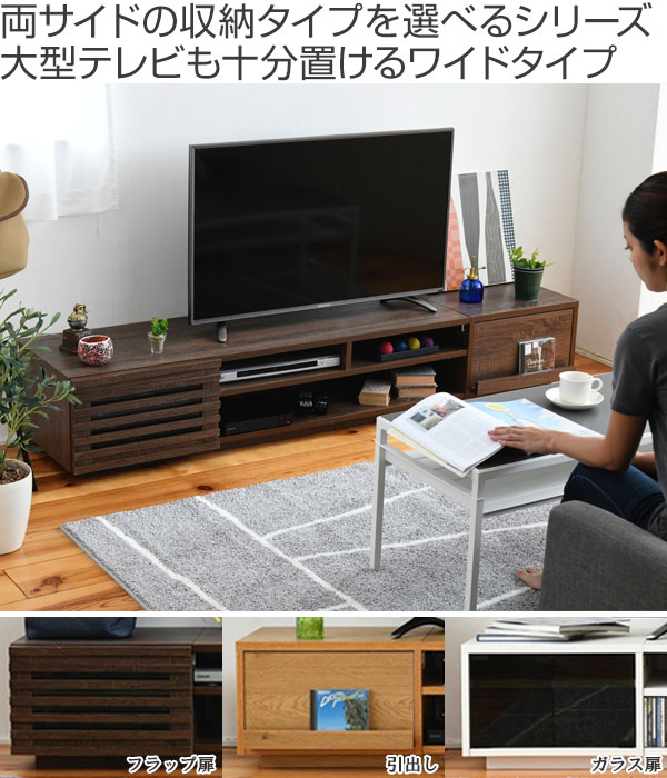 左右の収納を組み合わせて使えるテレビ台 ロータイプ。