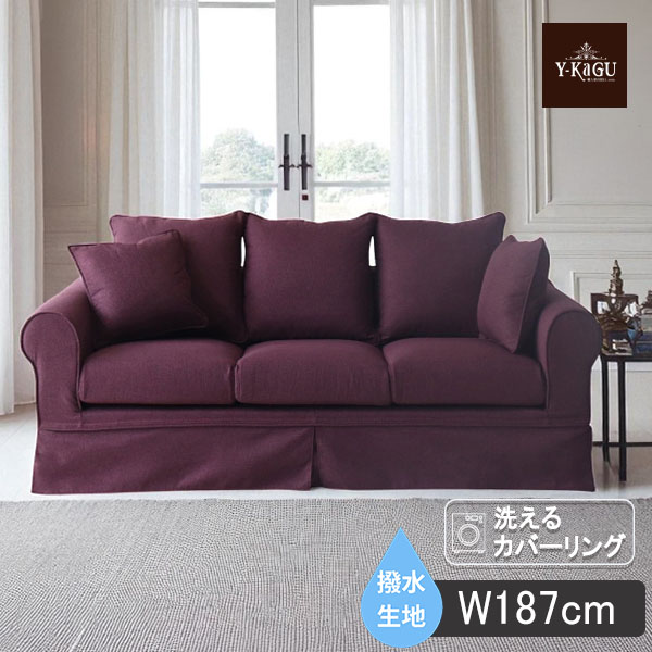Y-KAGUオリジナル 洗える カバーリングソファ フレンチパープル 3P3人掛け Y-KAGU 輸入家具屋さん.com。