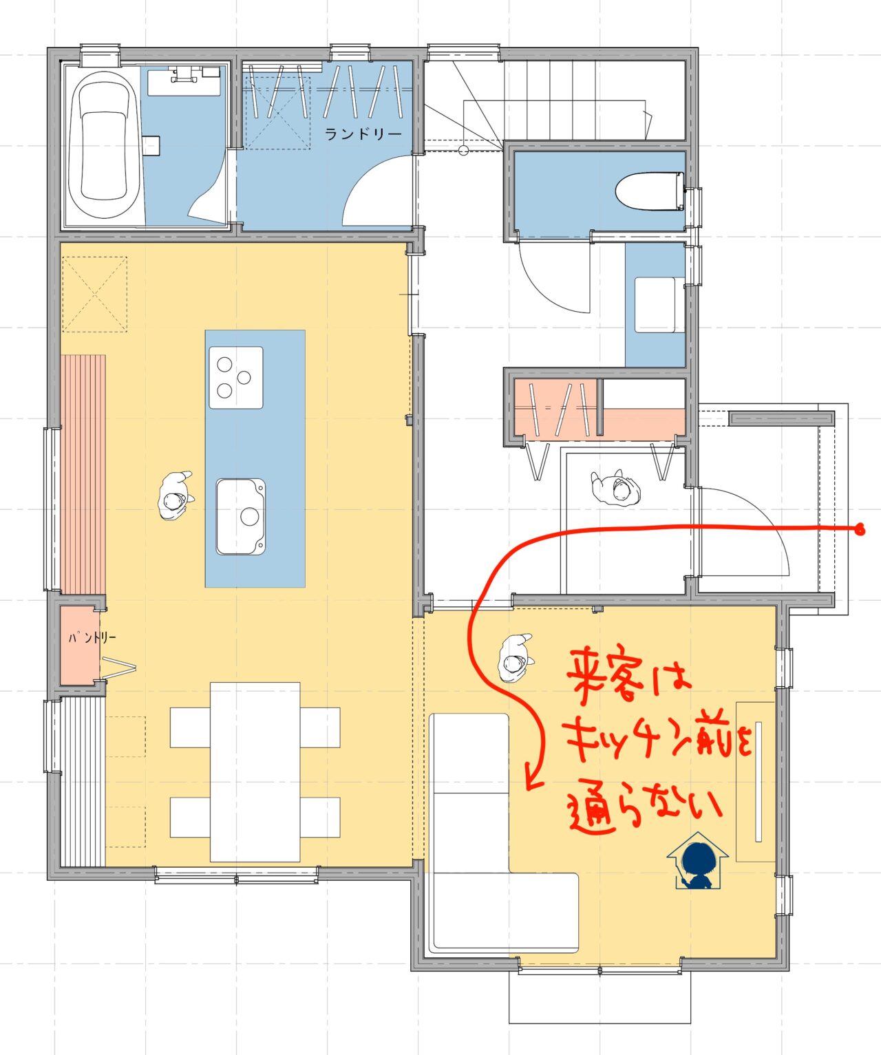 玄関から即キッチンにつながるラクラク動線〜奥様の願いを叶えるのがご主人のこだわり〜注文住宅悠悠ホーム。