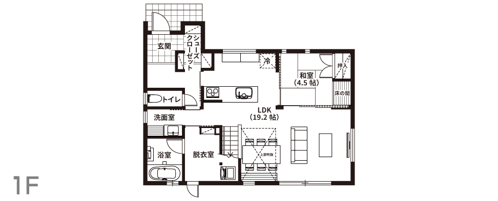 2階建×4LDK×36坪玄関から入れる和室のある間取り咲くくらし。