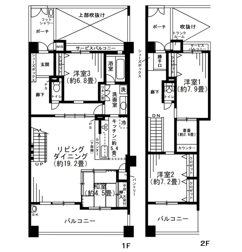 18坪 外階段で玄関を分けた完全二世帯住宅の間取り横浜の狭小住宅・二世帯住宅・注文住宅の間取りは中鉢建設。