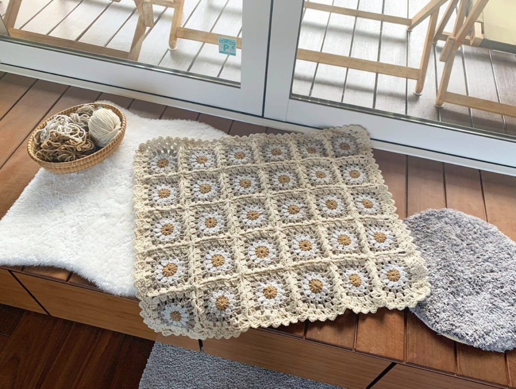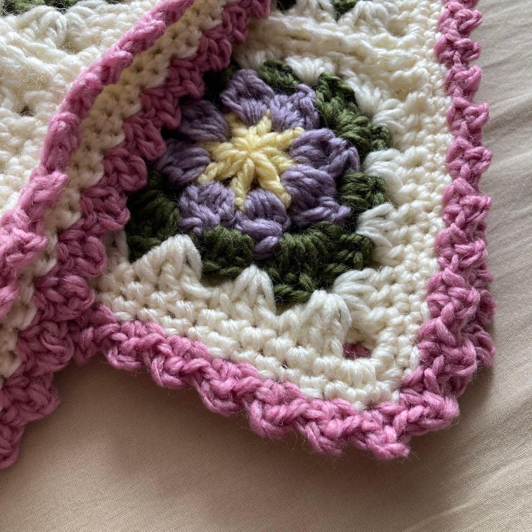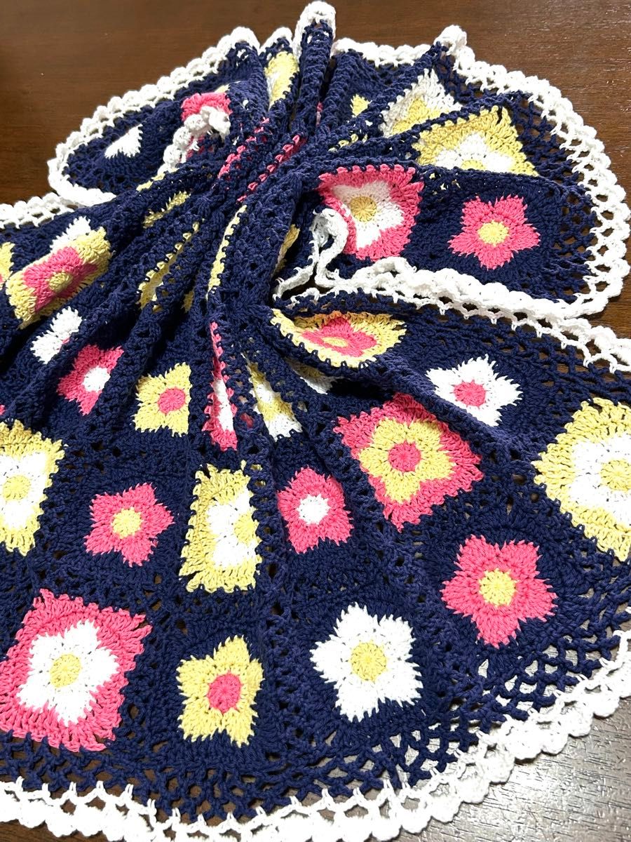 花モチーフ🌸かぎ針編みのミニブランケット☆crochet mini blanket ☆クロシェ編みミニブランケット。