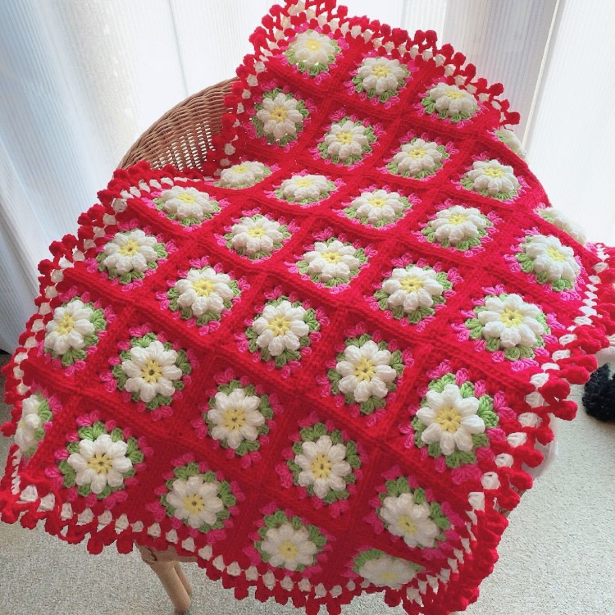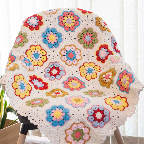 かぎ針編み お花 モチーフ ひざ掛け❁ポップコーン アクリル ❁編み物 鍵編み かぎ針編み ソファーカバー ブランケットカーペット・絨毯・ラグ・マット TxT 通販 4836810Creema クリーマ。