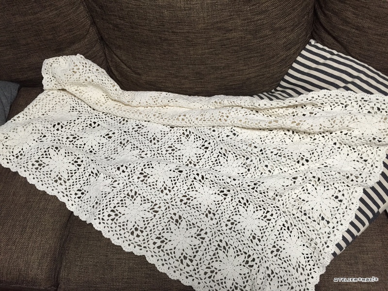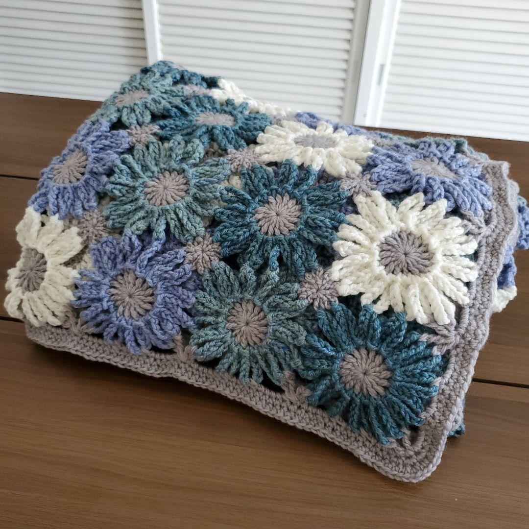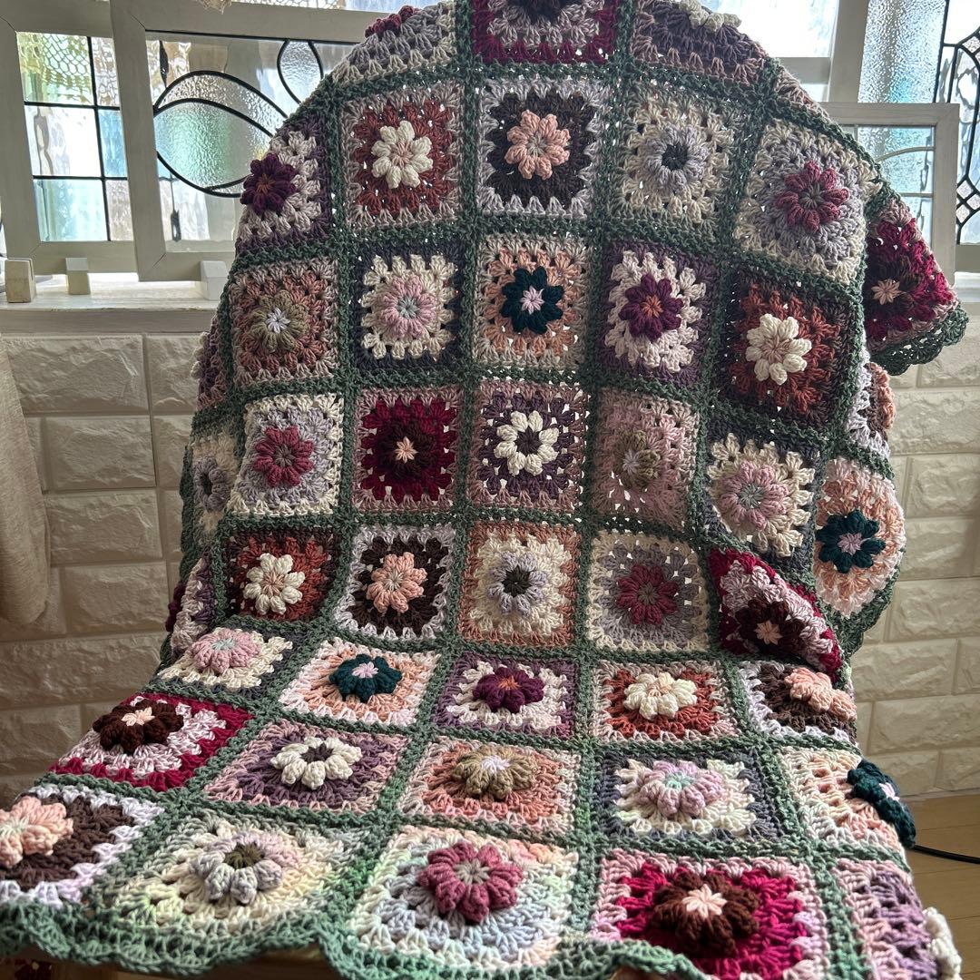 立体花モチーフのブランケット、完成☆編み物アザラシの日常。