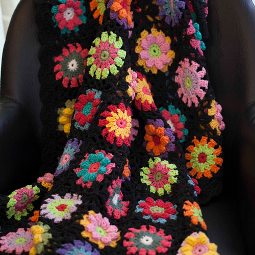 ぷっくりお花 マルチカバー ブランケット 膝掛け モチーフ編み ハンドメイド 手編み かぎ針編み お花モチーフ ブランケット ひざ掛け マルチカバー黒 その他インテリア雑貨 Moi 通販 16791452Creema クリーマ。