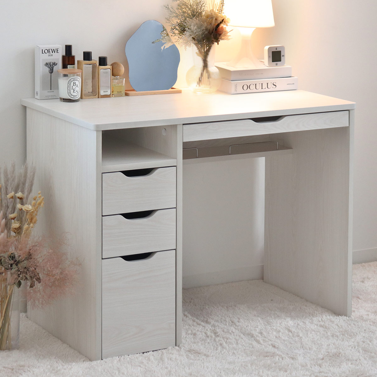 ワークデスク 引き出し付き 幅95.5cm 木製 コンパクト 韓国風インテリアデスク 机 つくえ パソコンデスク PC 収納 スリム おしゃれ白 ホワイト 木目調 ナチュラル シンプル かわいい 寝室 リビング テレワーク 在宅ワーク。