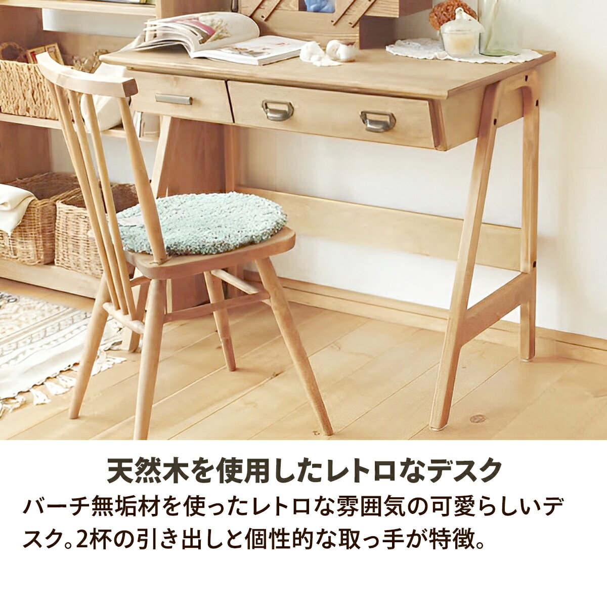 デスク おしゃれ 幅90 引出し付き かわいい 木製 天然木 バーチ テレワーク 在宅勤務 パソコンデスク 北欧 コンパクト 一人暮らし 作業机 机学習机 簡単組立 アンティーク カントリー ヴィンテージ ナチュラル コットン COTTON ノラ nora 関家具 1年保証Sizeee 木製。