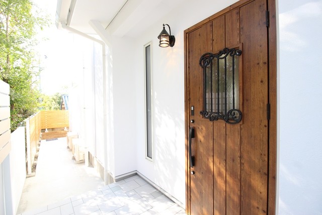 天然漆喰カルクウォールの美しい白にレトロな可愛い玄関ドアがとってもお洒落♬ - 北欧 - 玄関 - 他の地域 - 株式会社SEEDHOMEHouzzハウズ。