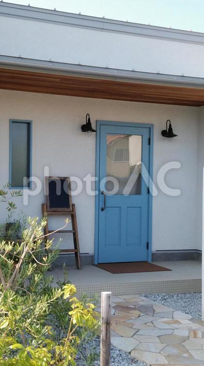 スカイブルーの玄関ドアがかわいいナチュラルフレンチの家 - かわいい家photo。