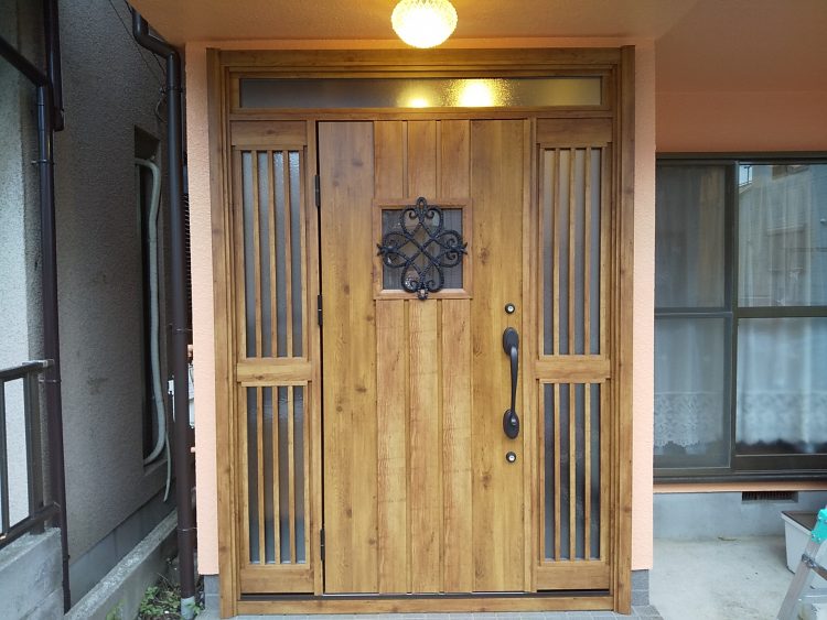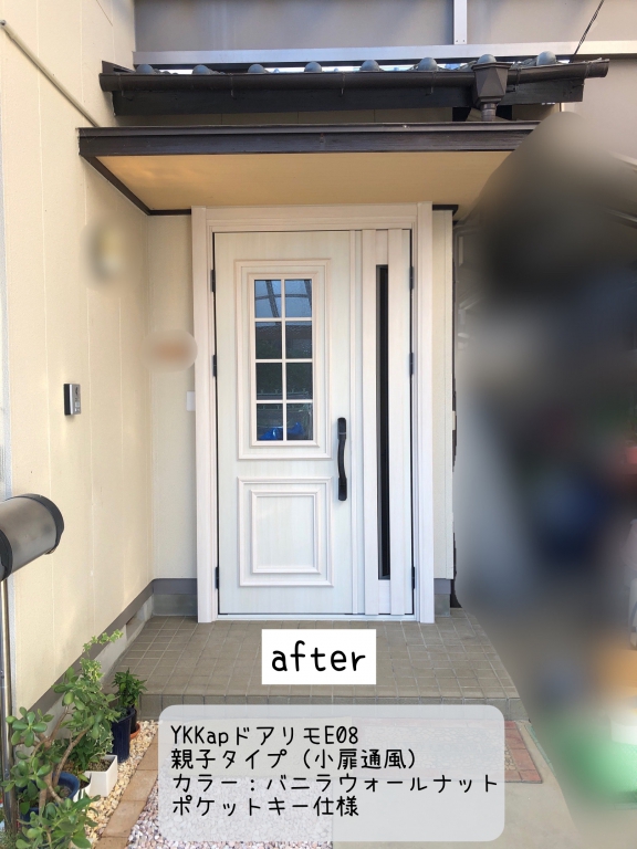 吹田市にて玄関リフォーム工事で片開き玄関ドアを洋風の親子玄関ドアに取替てきました。