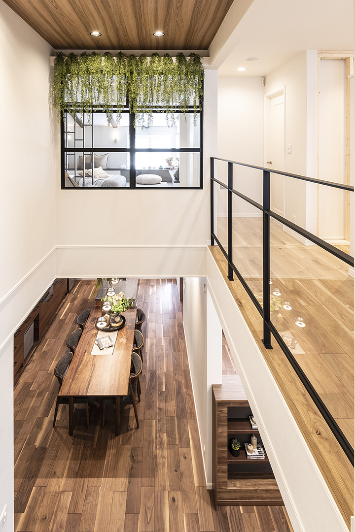 室内用窓で開放感バツグン、木目と美しい緑の映える家新築注文住宅・リフォーム・リノベーションの工務店 福屋工務店。