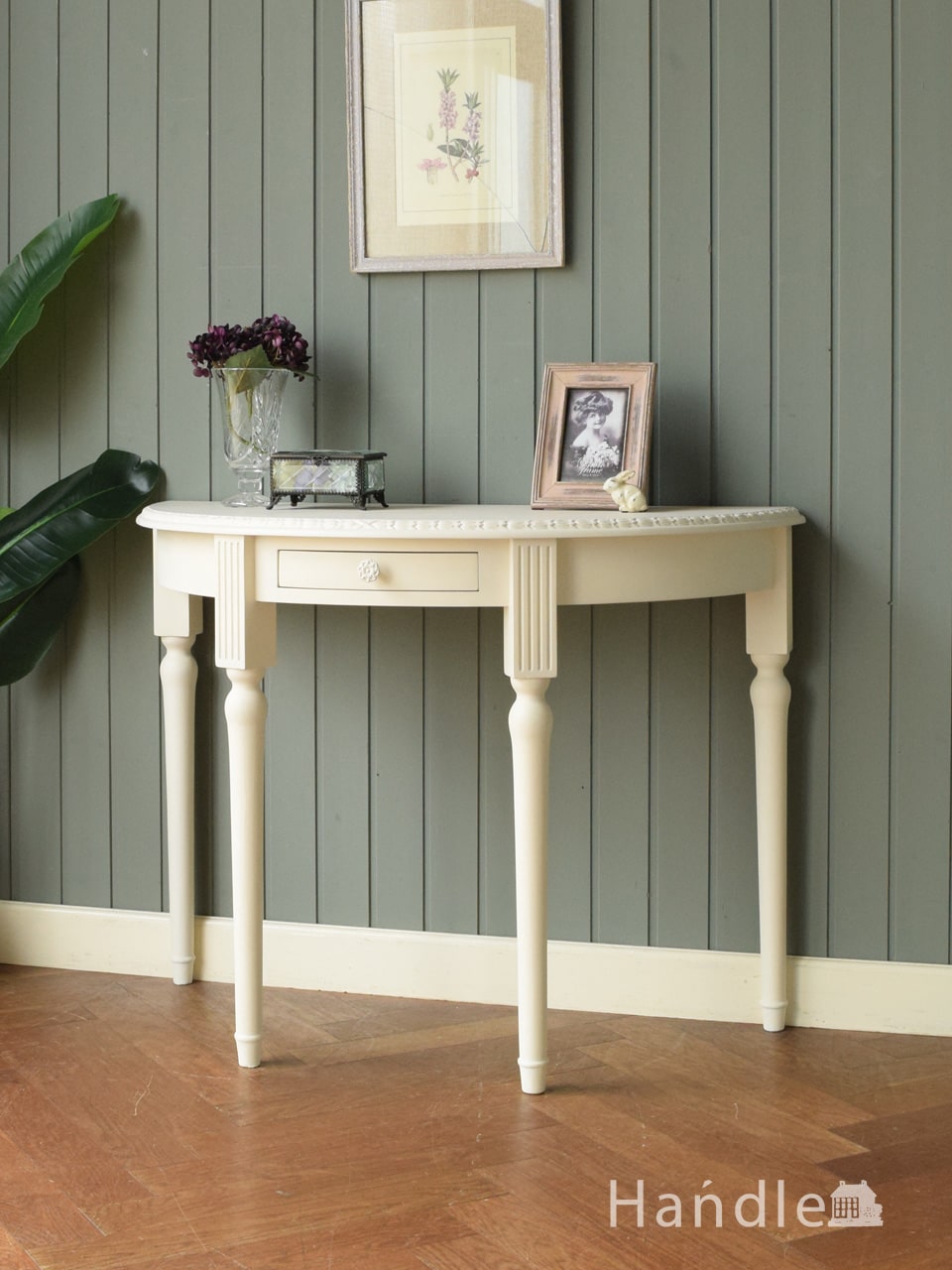 フランスアンティーク調のコンソールテーブル、シャビーシックな白いフレンチコンソール y-601-f アンティーク風。