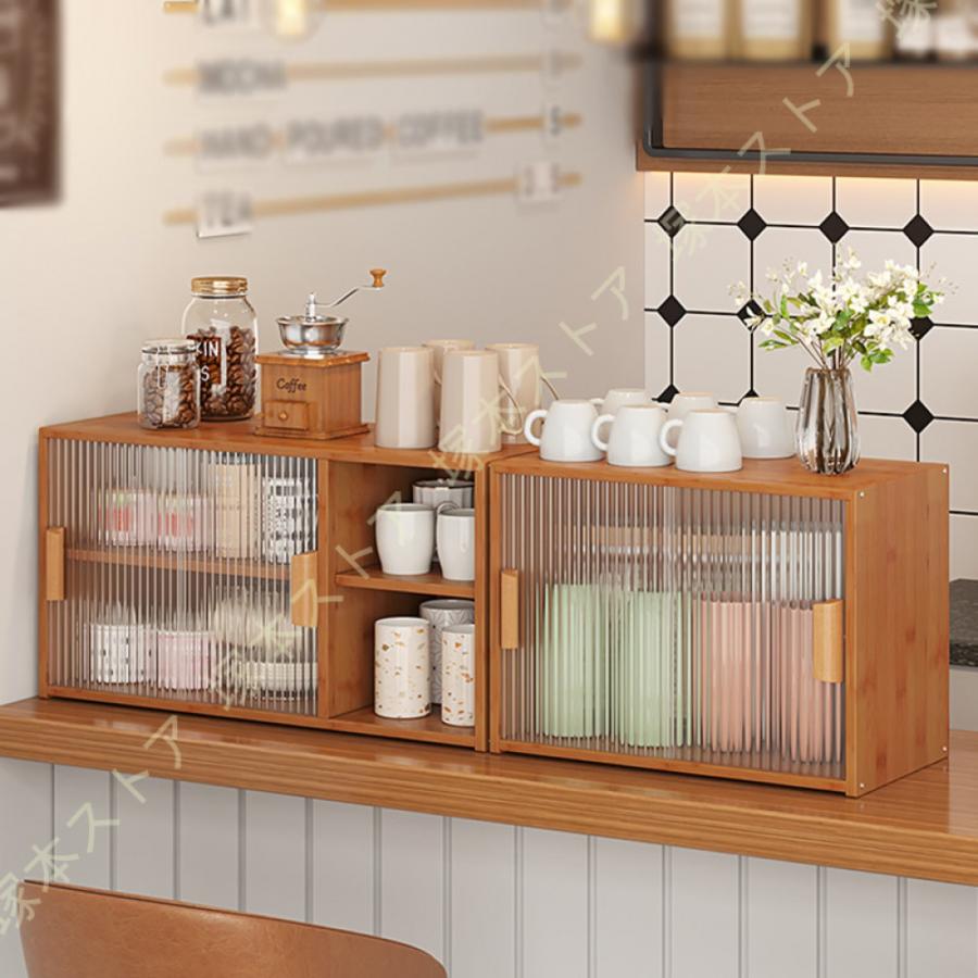 食器棚 グラススタンド カウンター上収納 ラック キッチンラック カウンター上 台所 キッチン 上置き棚 収納 お皿 コップ 調味料 調味料棚マグカップスタンド 調味料ラック おしゃれ かわいい 木製 ミニ食器棚 カウンター上 キッチン 収納 両面開閉 キャビネット ロー。
