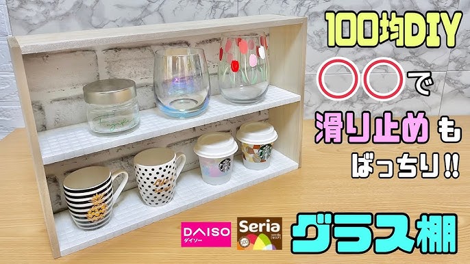 オシャレな 100均DIY収納DIY グラス収納にピッタリな滑り止め付きグラス棚の作り方 DAISOSeria たくさん入って整理整頓できる!!オシャレに収納ができる! diy収納ラック。