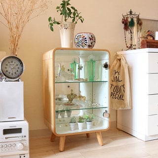 PINE WOOD キッチンキャビネットグラス収納 ガラス扉のついた卓上キャビネット。
