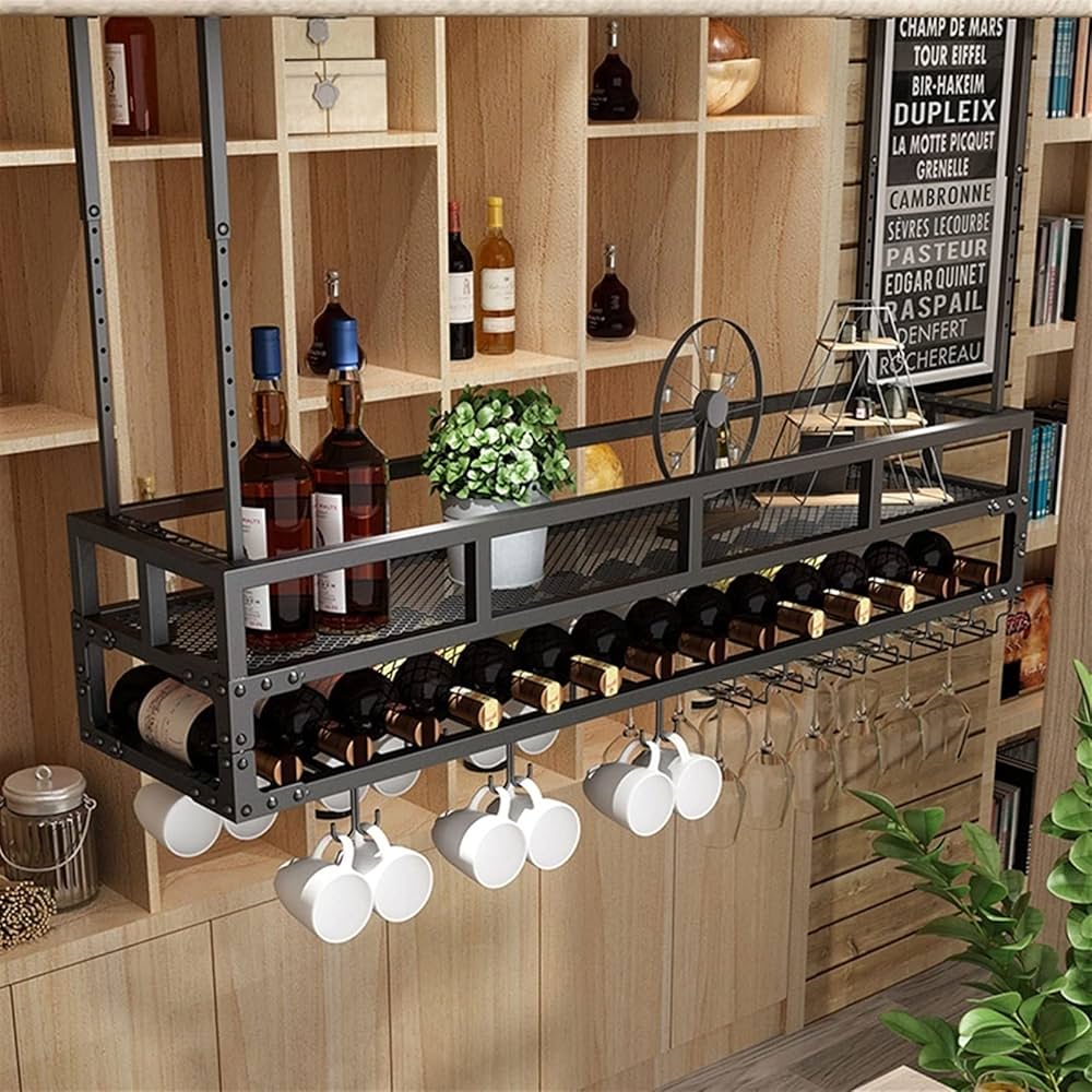Amazonワイングラスホルダー 家の装飾吊り下げ収納のキッチンワインラックのぶら下がっているワインのガラスホルダーワインのボトルホルダー、天井の装飾ワイングラスラック、バー、レストラン、キッチンステムウェアホルダー装飾的な棚、調節可能な高さと幅Size :。
