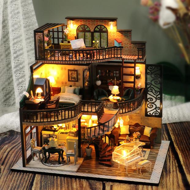 AmazonDIY木製ドールハウス 手作りキットセット ミニチュアコレクション オルゴール プレゼント 引っ越し祝い贈り物 LEDライト付きプラモデル 通販。